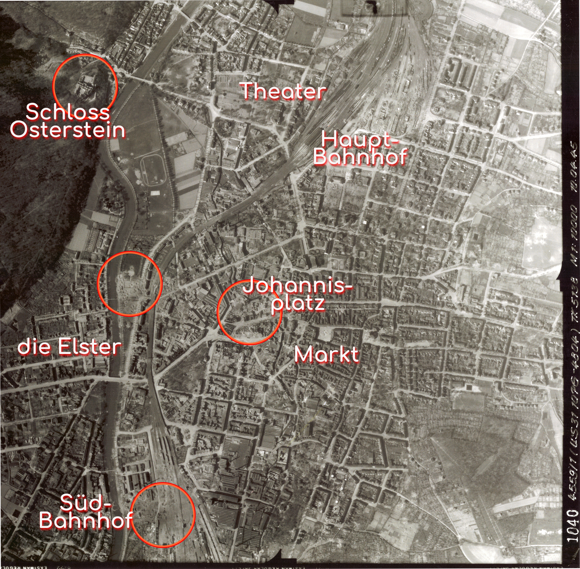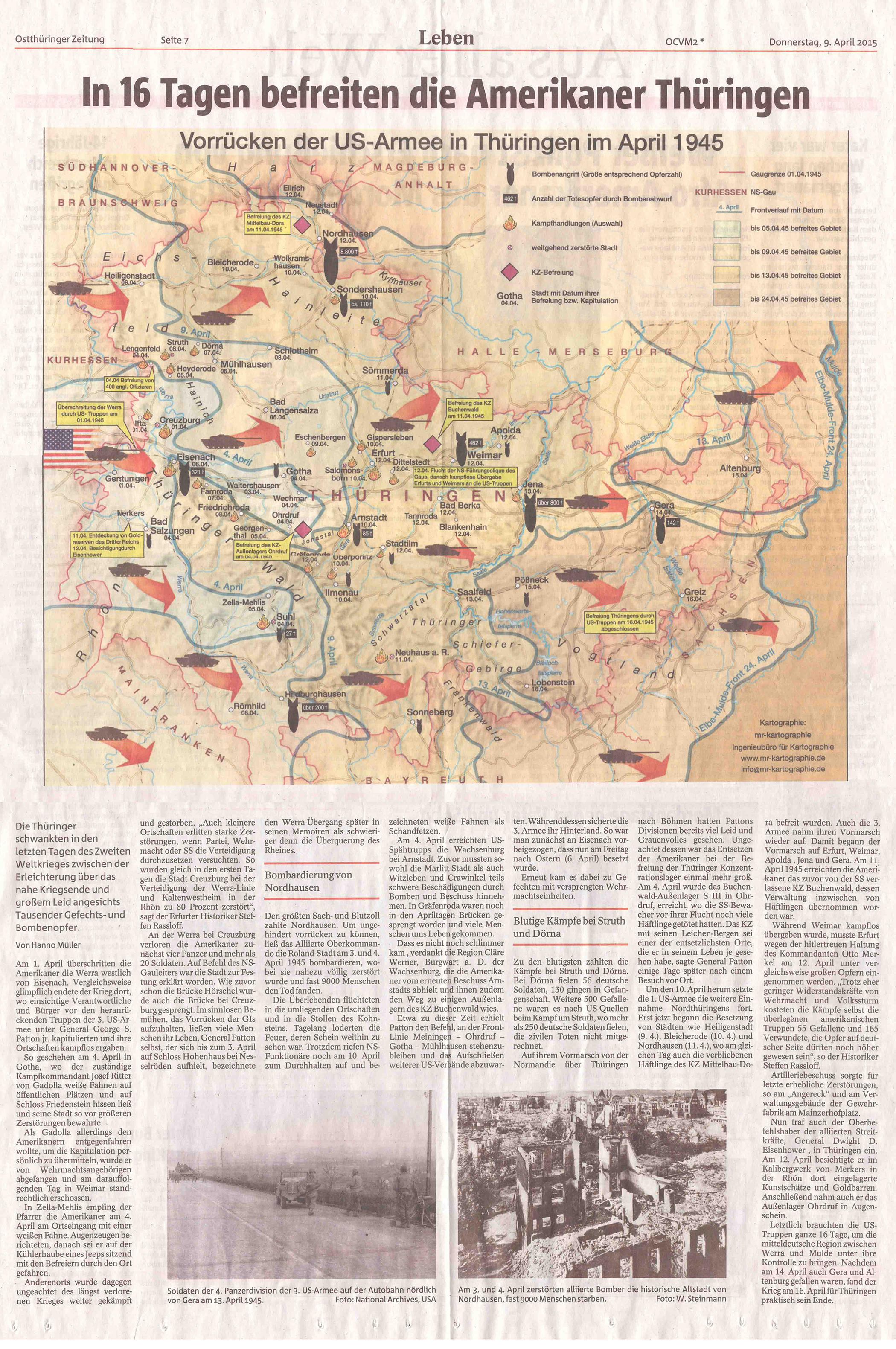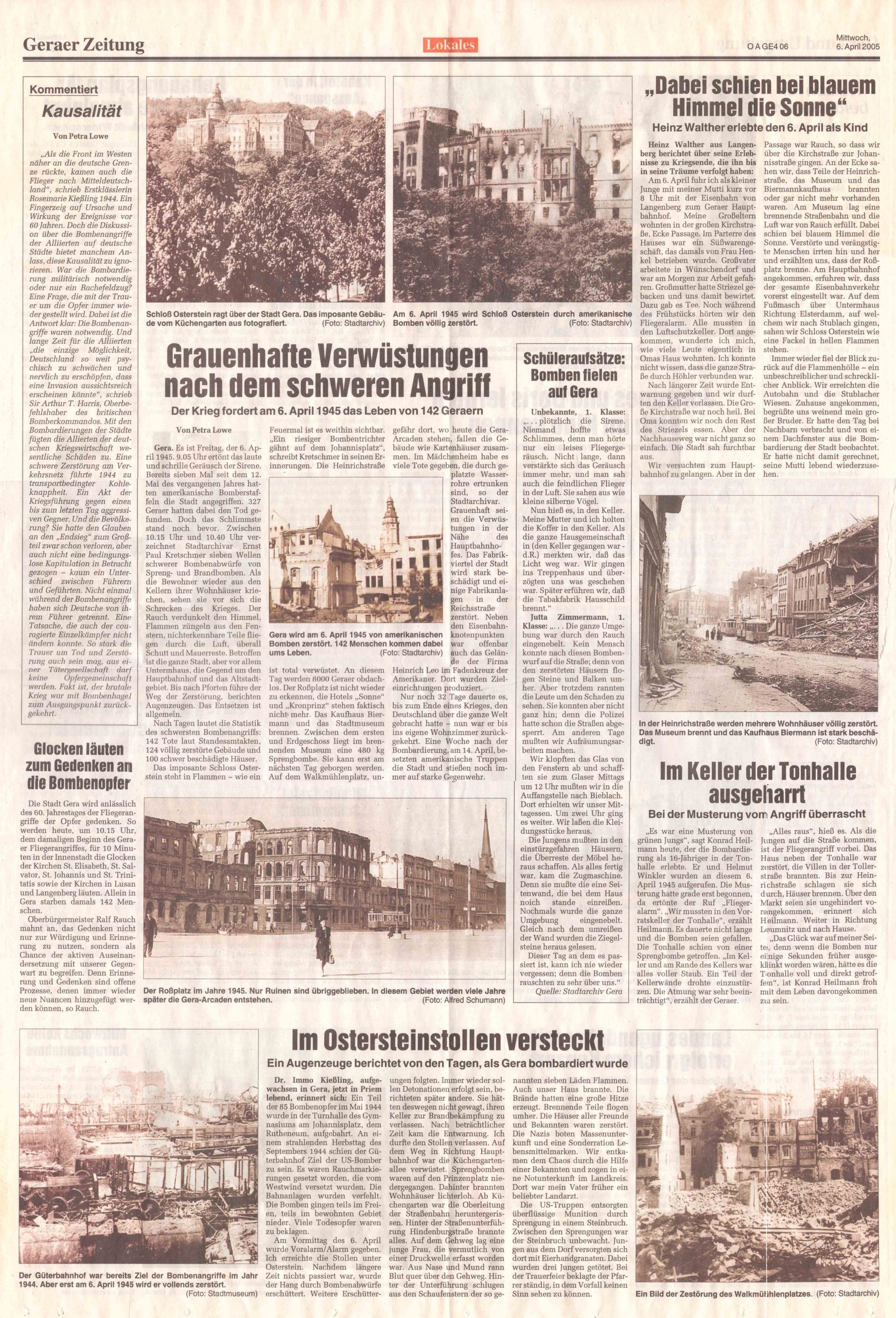 Hier die Luftaufnahme der Amis vom 10. April 1945 des Stadtzentrums und der OTZ-Artikel vom April 2005 und 2015: