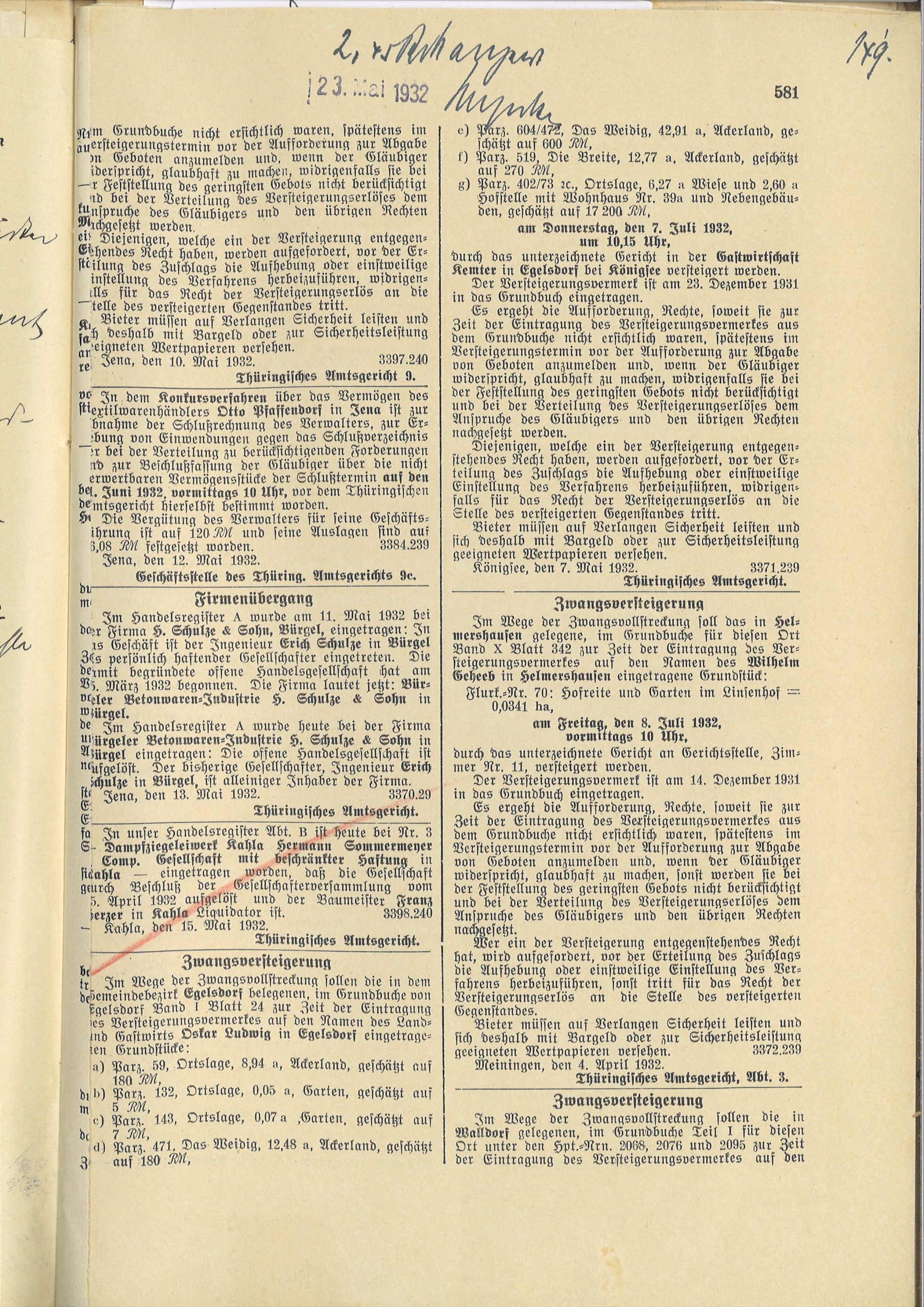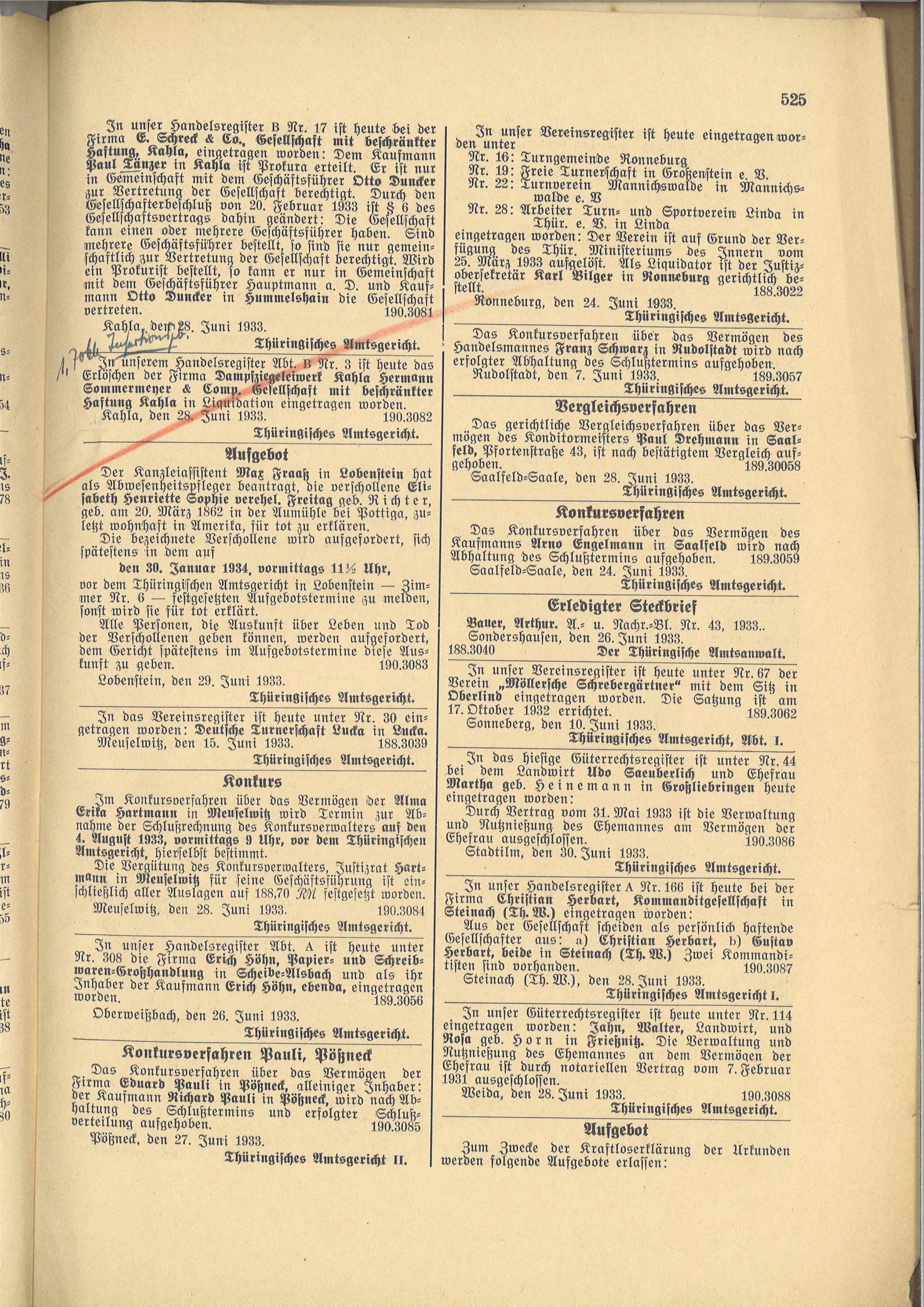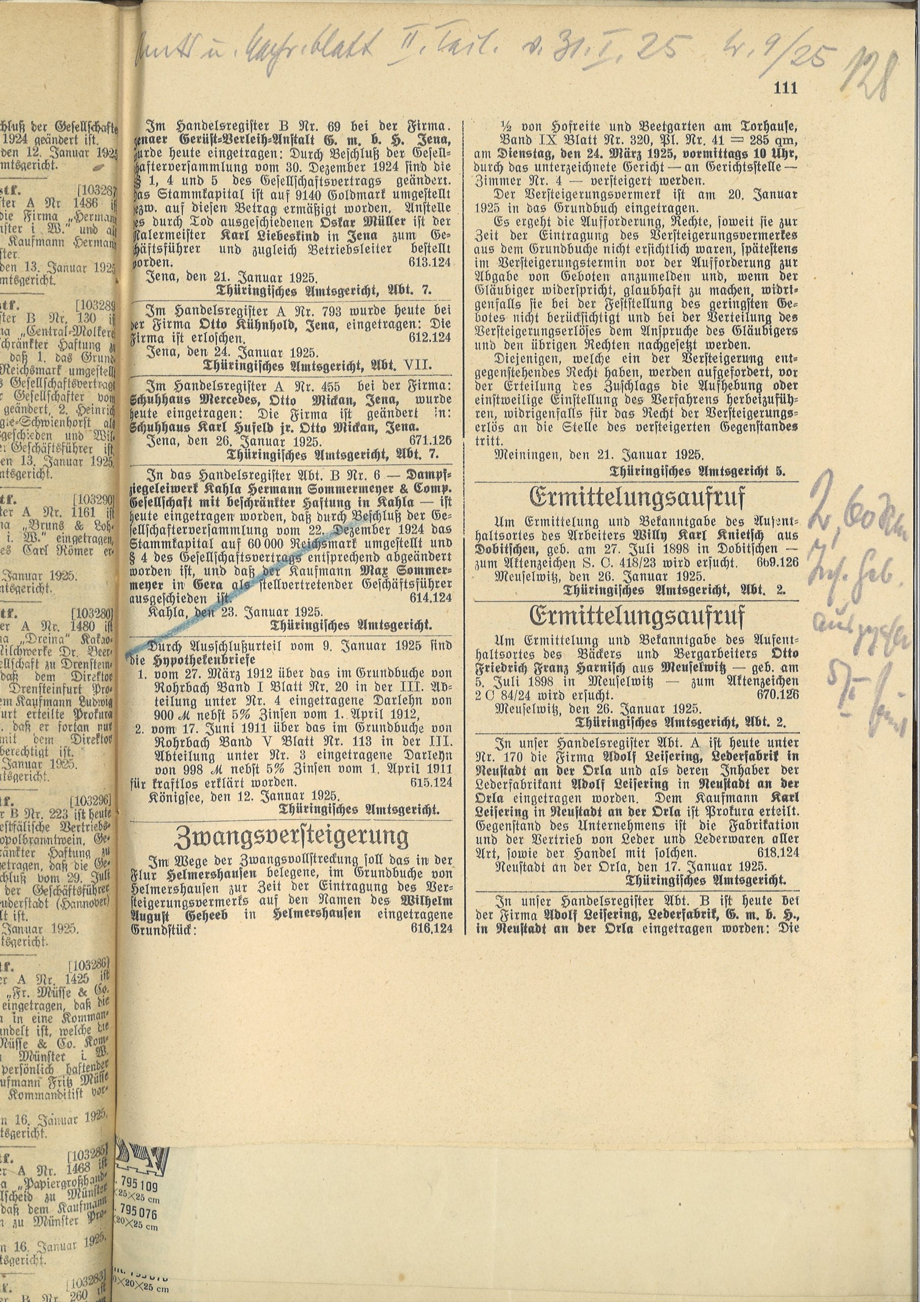 Die Bekanntgabe der Handelsregistereintragungen in den Thüringer Nachrichten der Kahlaer Ziegelei sind hier nahezu vollständig enthalten.
