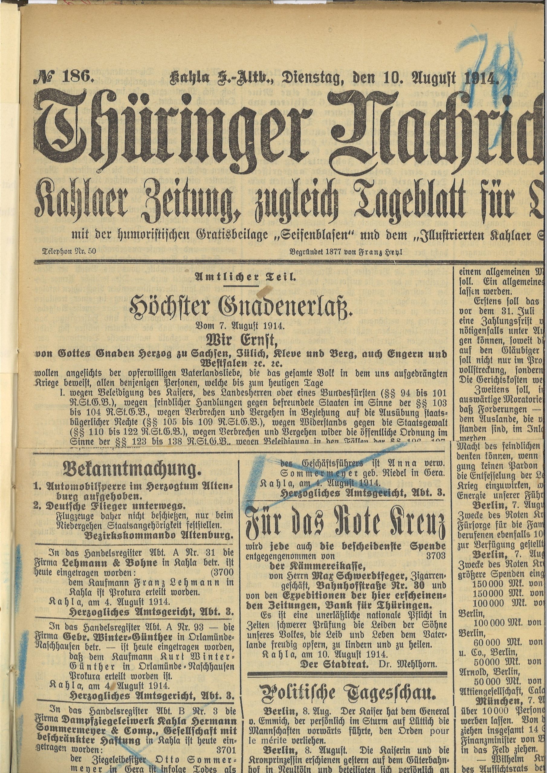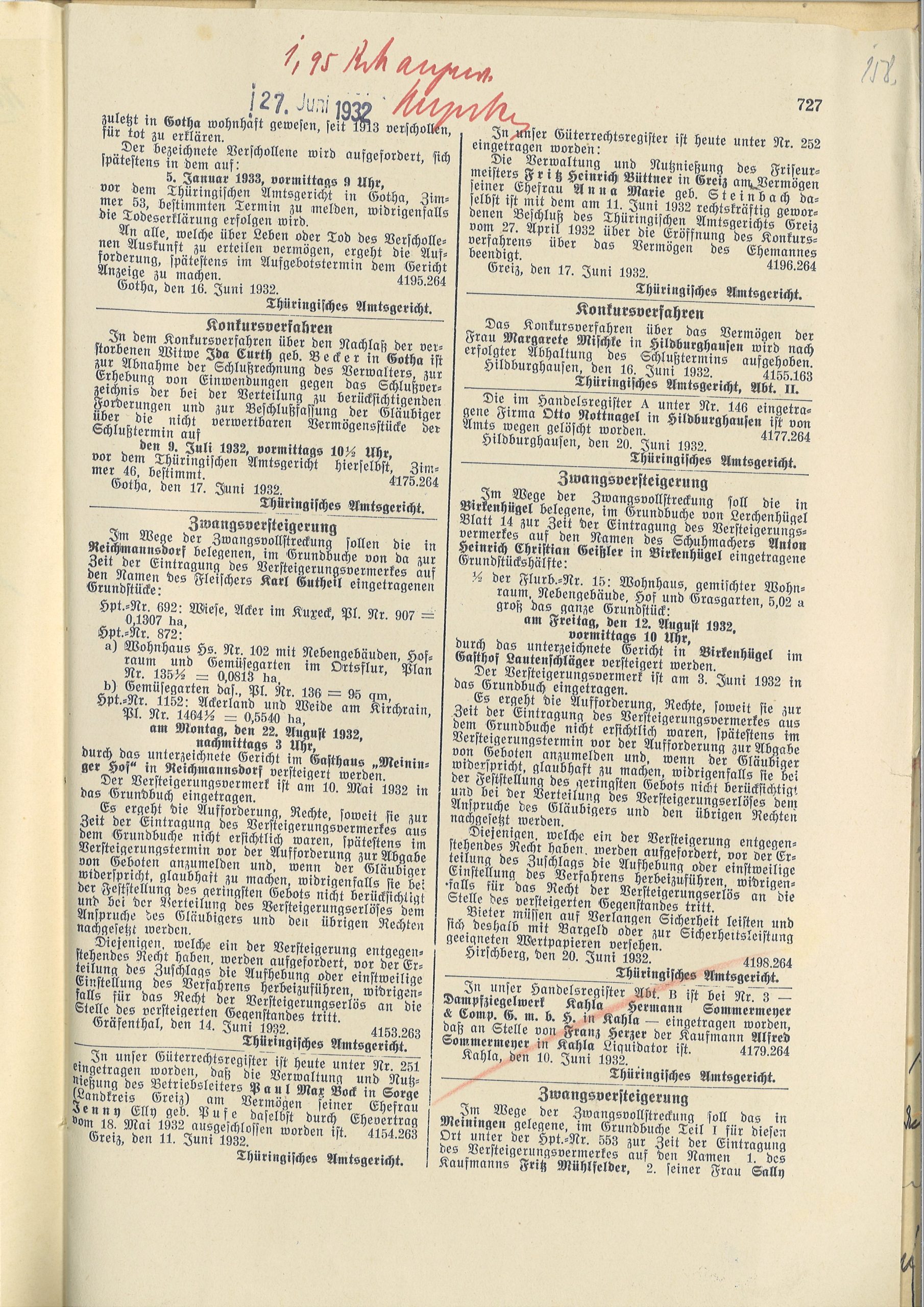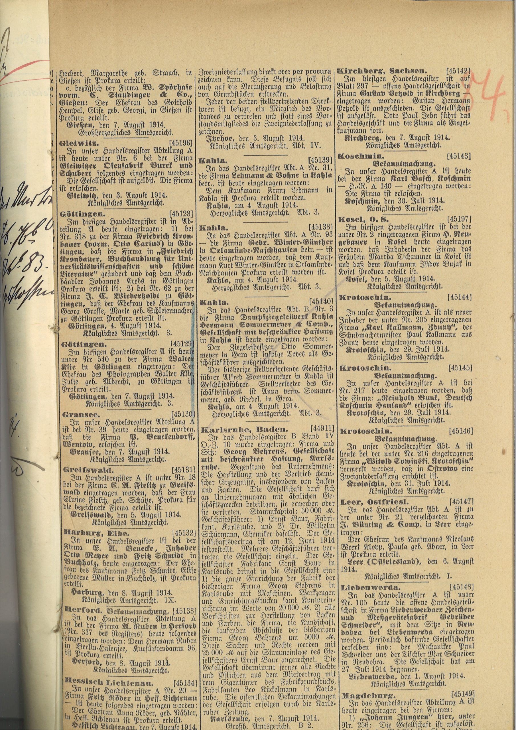 Die Bekanntgabe der Handelsregistereintragungen in den Thüringer Nachrichten der Kahlaer Ziegelei sind hier nahezu vollständig enthalten.