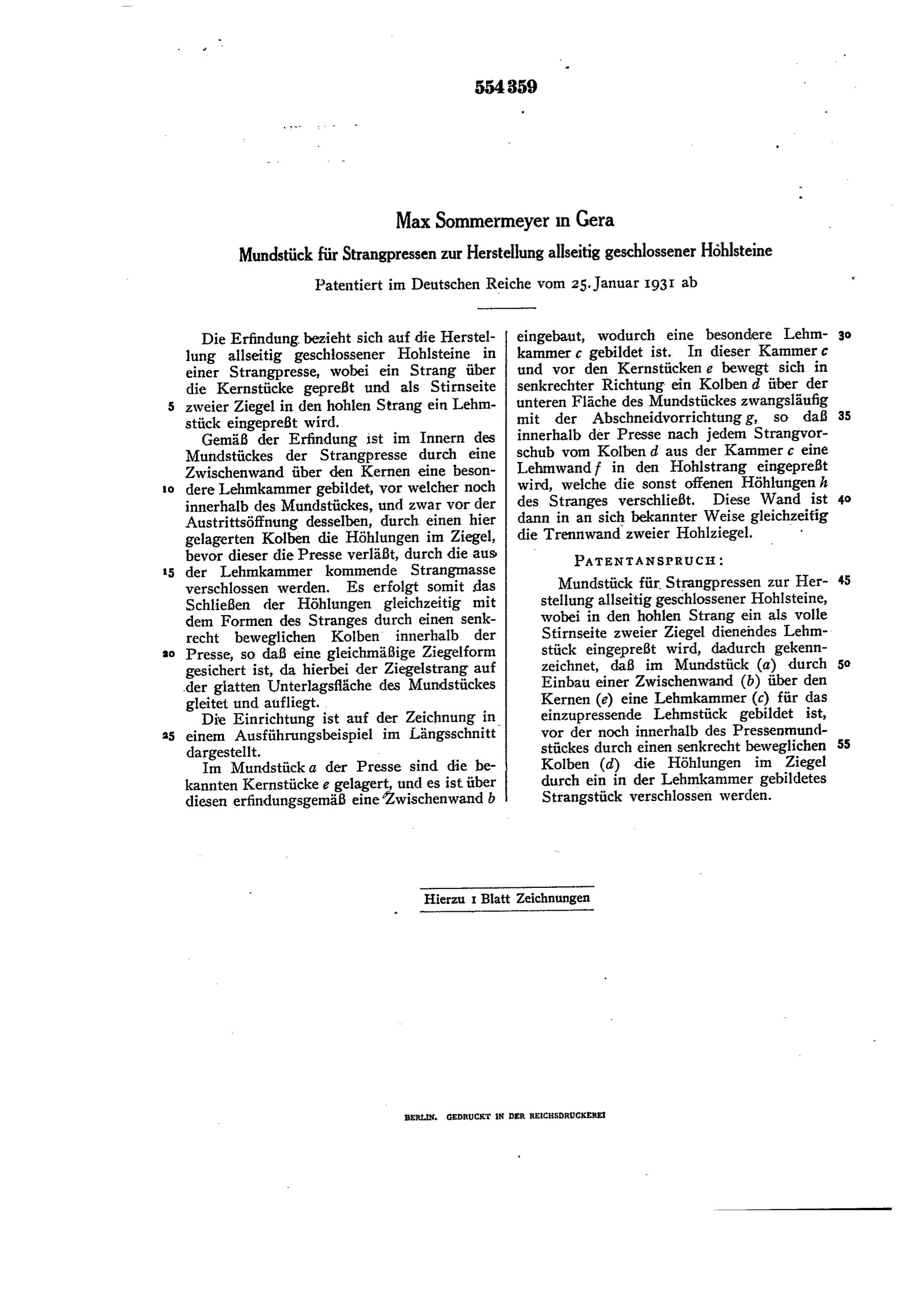 Es ist davon auszugehen, dass der „Erfindungsprozess“ einige Jahre dauerte, bis dann 1932 das Patent erteilt wird.