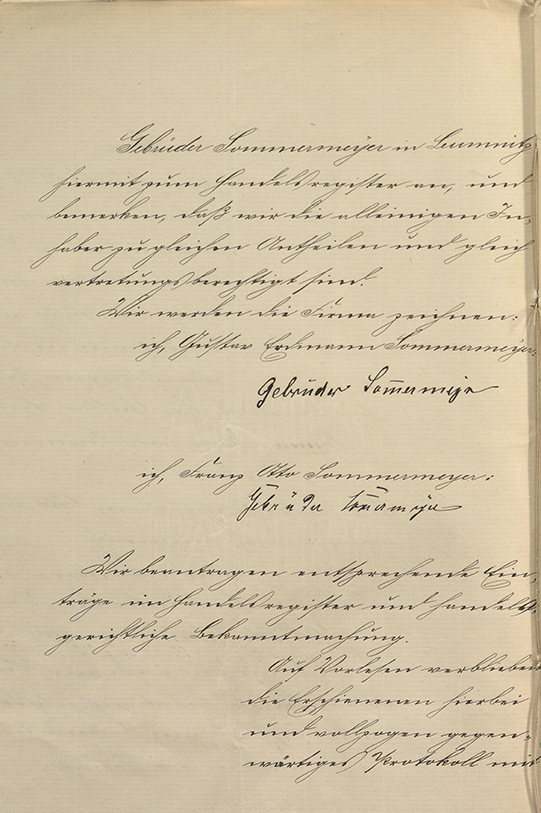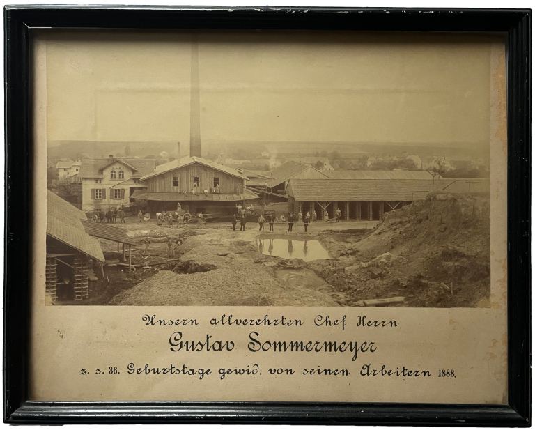 Leider existieren aus den Anfangsjahren bis auf die OHG-Gründungs-Urkunde (siehe „Die Gesellschafterbeschlüsse“) keinerlei Unterlagen mehr. Lediglich ein Bild der Ziegelei existiert noch. Auf der Rückseite steht u. a. „1.7.1873“