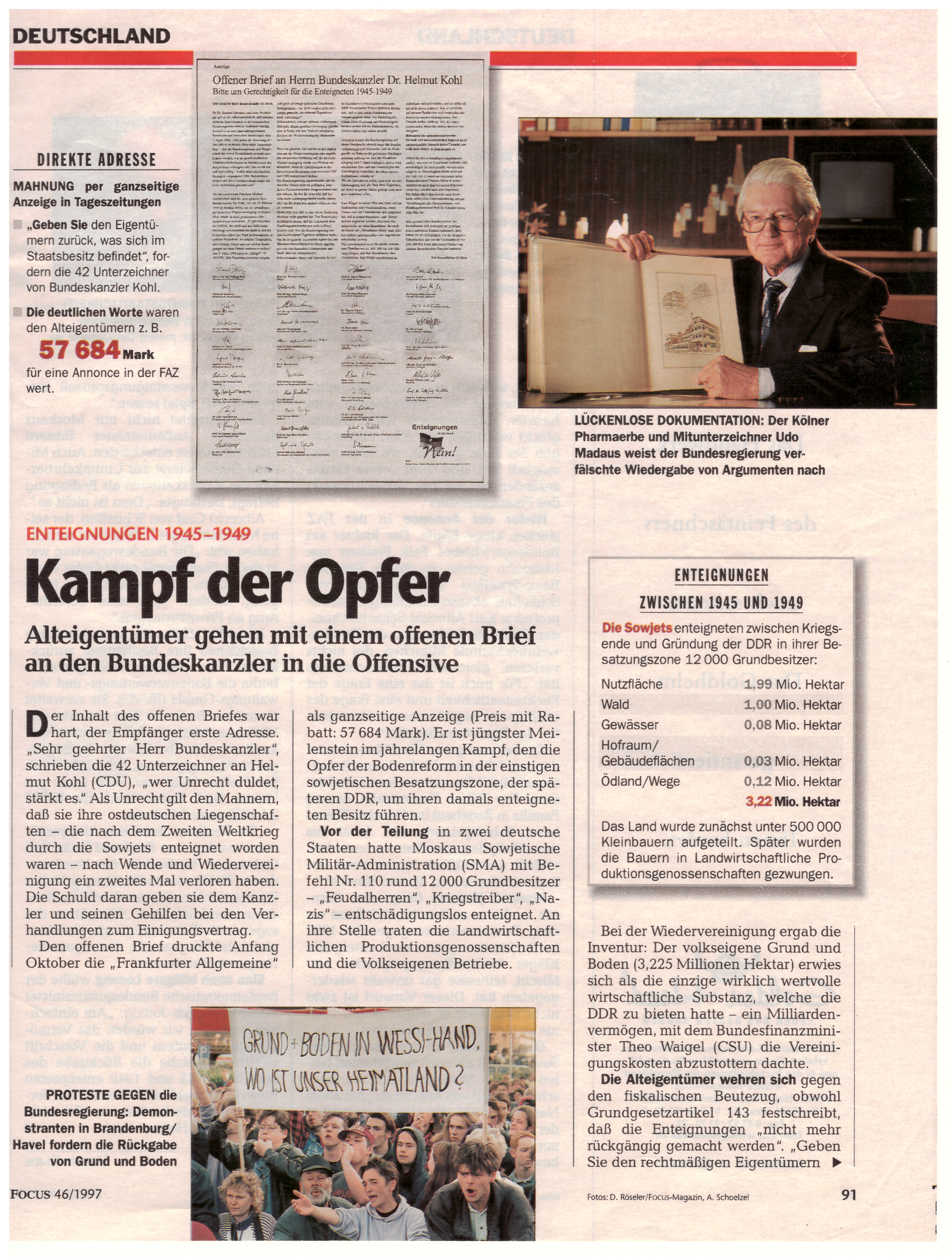 Mit den Modrow Gesetzen im März 1990 (das Gesetz ermöglichte, volkseigene Gebäude und/oder Flächen zu erwerben) sorgte er dafür, dass betroffene DDR-Bürger zu einem Spotpreis das von ihnen bewirtschaftete Land/Gebäude, welches unter die o. g. Kriterien fiel, „schnell“ vor Toresschluss noch kaufen konnten.Ende November 1989 legte Kohl das 10-Punkte-Programm im Deutschen Bundestag vor, das erstmals von der Herstellung der Deutschen Einheit sprach.