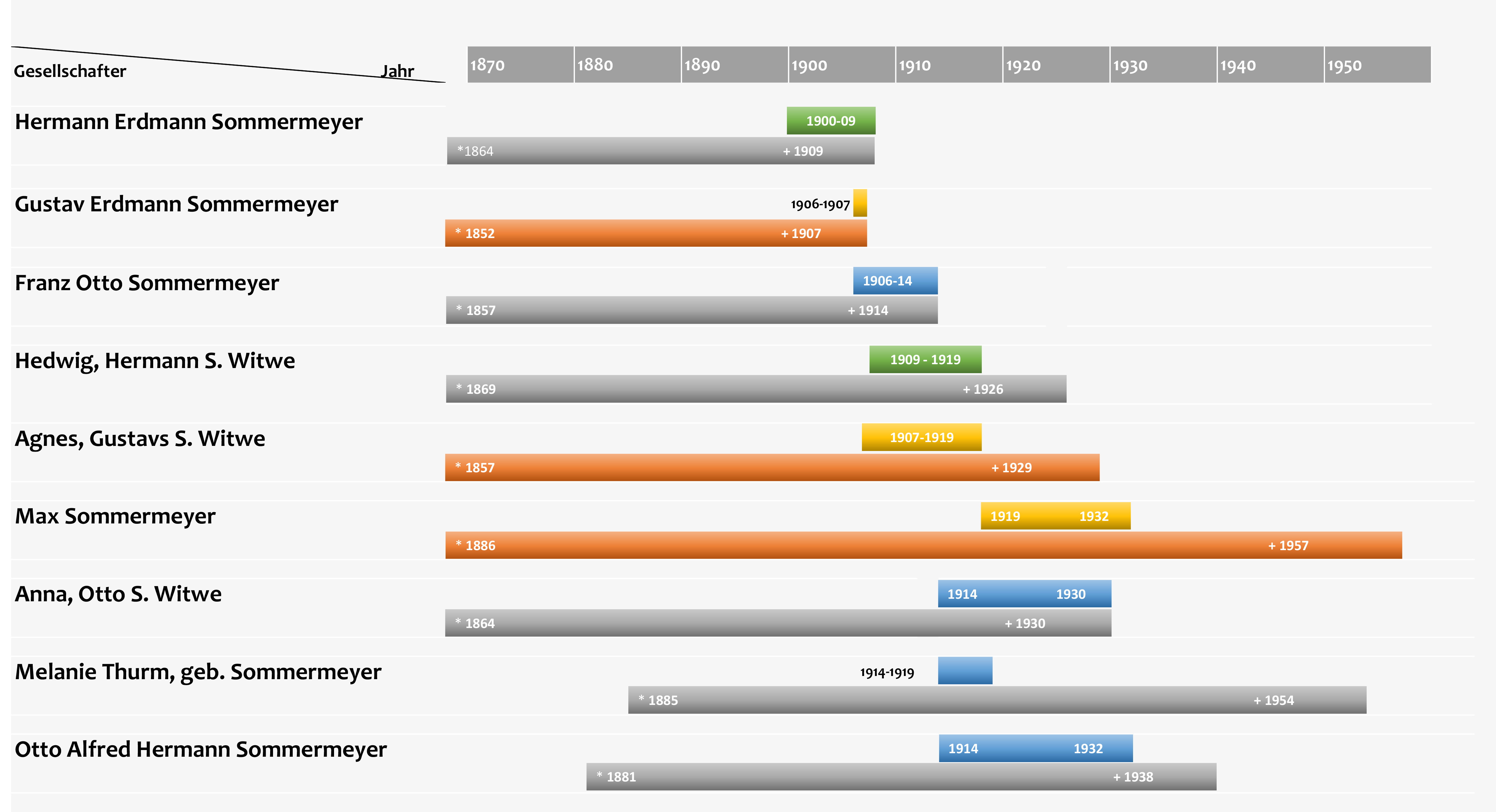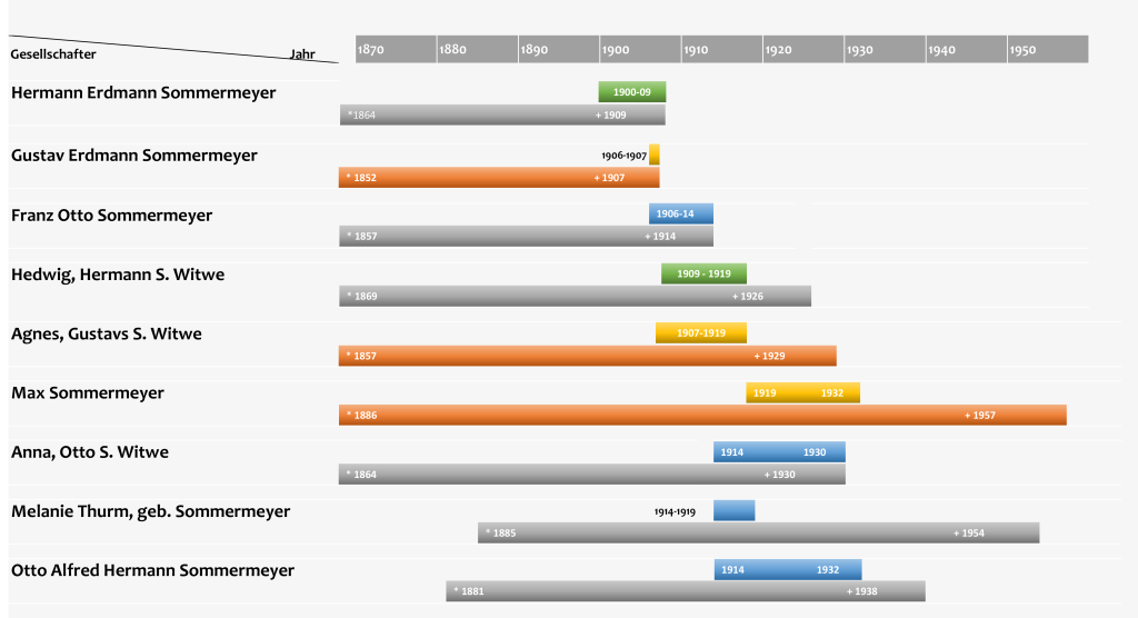 Der Stammbaum „Carl Friedrich Sommermeyer Nachkommen“ und die Time Line der Mitglieder der Kahlaer Gesellschafter.