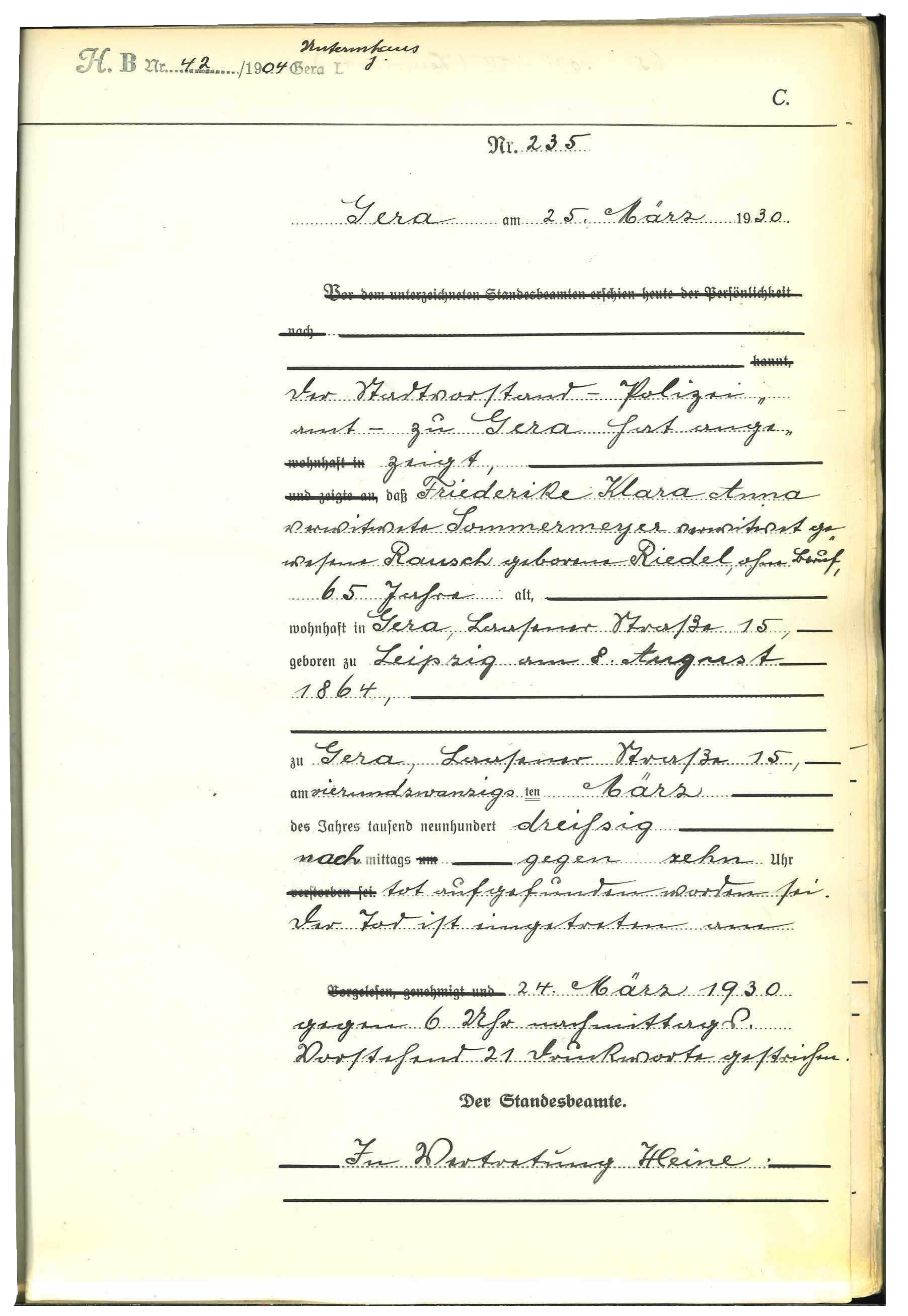 Sie starb am 24. März 1930 in Gera, vermutlich in ihrem Haus Laasener Str. 15