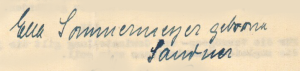 Ella Sommermeyer, geb. Sandner wurde am 15. Februar 1892 vormittags 11 Uhr als 5. Kind der Eltern Heinrich Julius (* 28.12.1857 +09.10.1923 ) und seiner Frau Anna Clara Sandner, geb. Eckstein (*07.02.1857 +17.06.1930) in Falkenstein i.V. geboren. Ihr Vater war Fabrik-Besitzer, in der Plauener Spitzen hergestellt wurden.