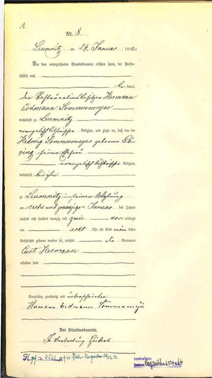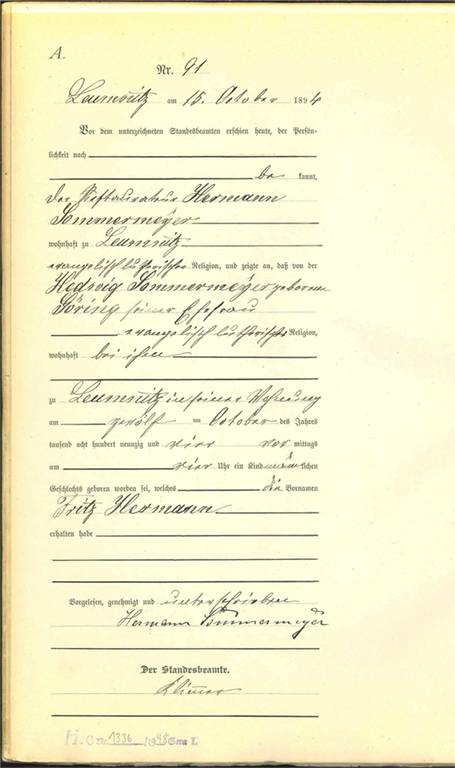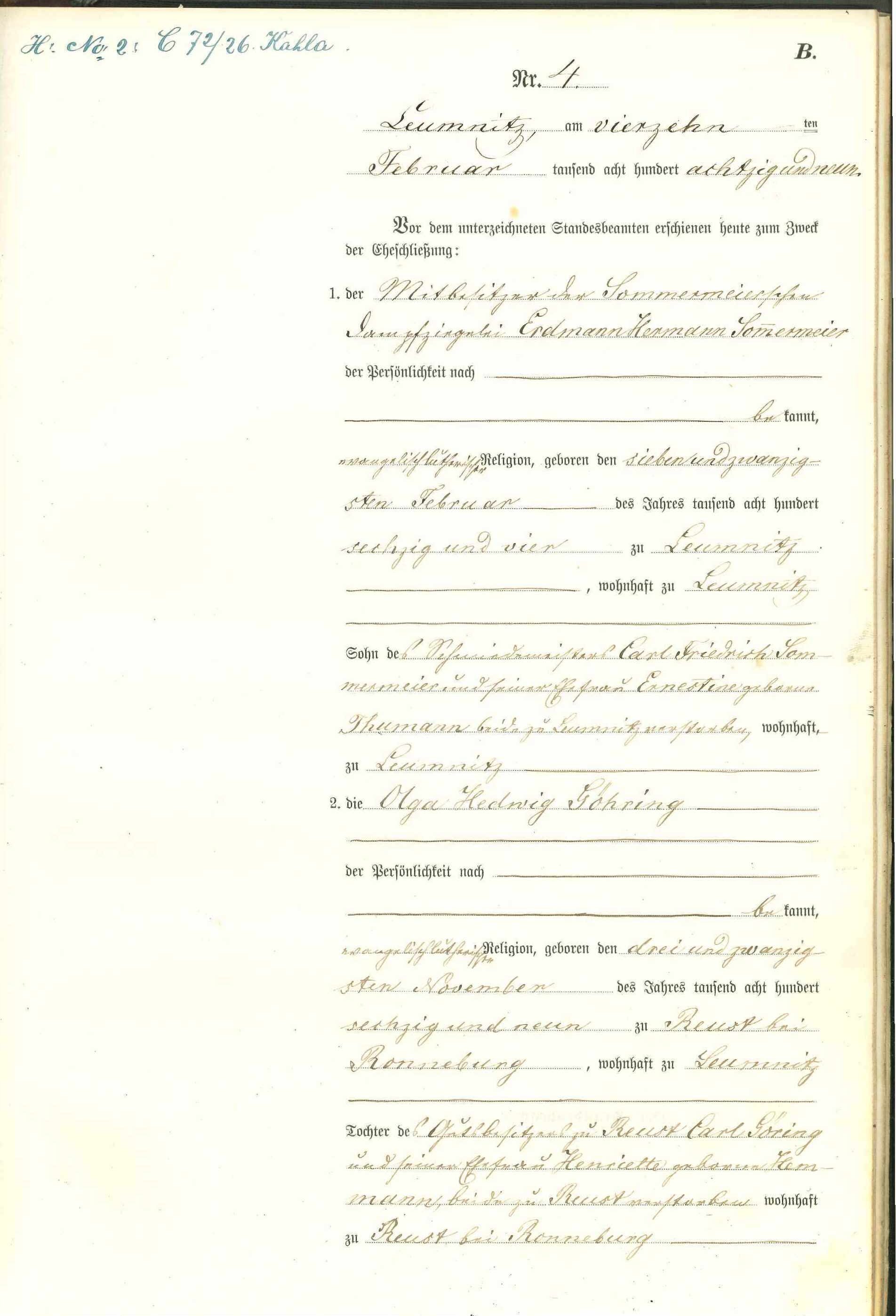 Hedwig Olga Sommermeyer, geb. Göring wurde am 23.11.1869 in Reust bei Ronneburg geboren.